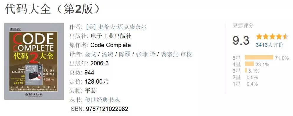 第一名:1333票《代码大全(第二版)》